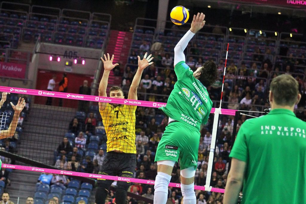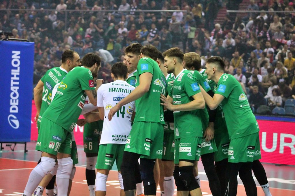 Jan Hadrava, Jakub Majchrzak, Dawid Siwczyk, Johannes Tille, Moritz Karlitzek, Paweł Halaba i Jakub Ciunajtis – na tych zawodników postawił w sobotę trener olsztyńskiej drużyny Daniel Pliński. Po drugiej stronie siatki czekali natomiast m.in. Wilfredo Leon, Marcin Komenda, Kevin Sasak i Aleks Grozdanow – czyli gwiazdy PlusLigi i światowej siatkówki. Aktualni mistrzowie Polski od pierwszych minut dominowali na parkiecie. Szybko objęli zdecydowane prowadzenie 10:3. Bardzo dobrze prezentował się zwłaszcza francuski przyjmujący Hilir Henno. Akademicy próbowali gonić wynik. Dzięki punktom Hadravy, Karlitzka i Siwczyka w połowie seta zbliżyli się na cztery oczka (16:12). W ataku nie radził sobie natomiast Majchrzak, dlatego zmienił go wracający do gry po kontuzji Seweryn Lipiński. Bogdanka nie zwalniała jednak tempa. Wygrała pewnie 25:19.