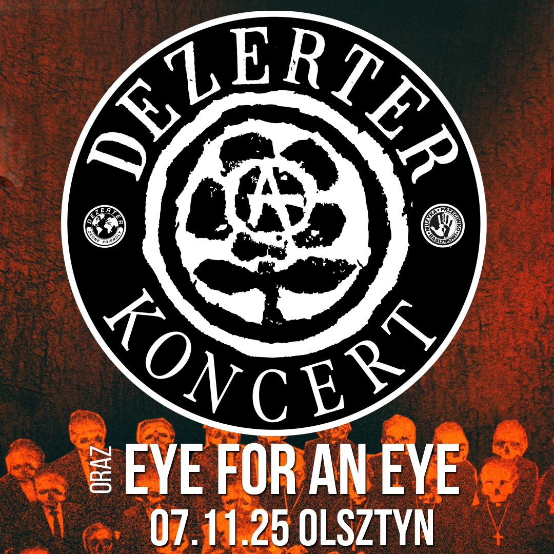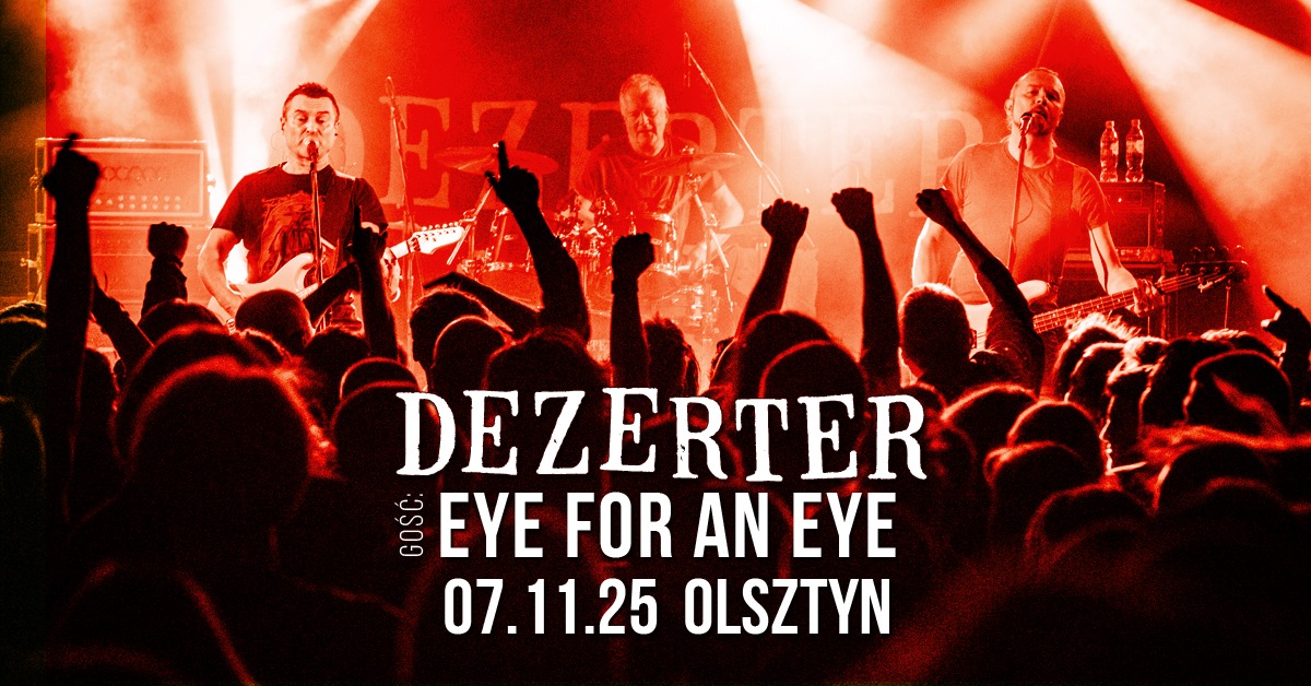 Legenda polskiego rocka grupa Dezerter wystąpi w listopadzie w Olsztynie. Punk rockowe trio zaprezentuje przekrojowy materiał z całej, liczącej ponad 40 lat kariery. Gościem specjalnym będzie grupa Eye For An Eye, która jest obecna na scenie hard core punk od końca lat 90.