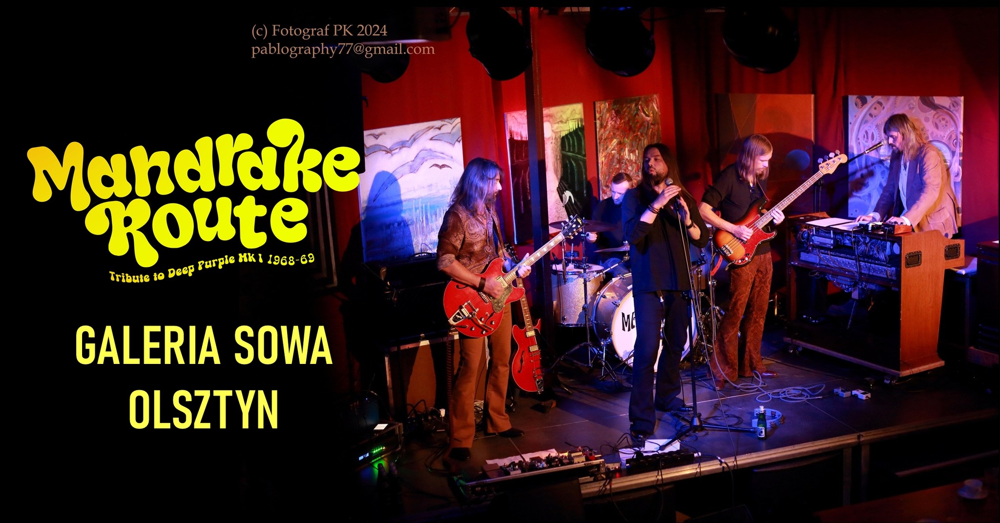 Mandrake Route to grupa przyjaciół, pasjonatów, muzyków. Postanowiliśmy stworzyć jedyny w Polsce zespół, który odda hołd legendarnej grupie Deep Purple z pierwszego, psychodelicznego okresu MK I (1968-1969). Uwielbiamy improwizować, płynąć w hipisowskie rejony końcówki lat 60-tych. Posiadamy instrumenty i wzmacniacze z epoki, które oddają autentyczność brzmienia i dodają charakter naszym interpretacjom.