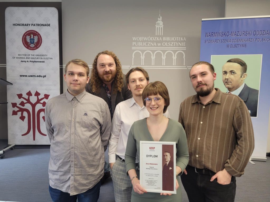 Aleksandra Skrago i Robert Lesiński otrzymali główne nagrody 16. edycji Ogólnopolskiego Konkursu Dziennikarskiego im. Seweryna Pieniężnego. Nagroda Młodego Dziennikarza trafiła natomiast do naszej redakcyjnej koleżanki – Ani Makarewicz. Doceniono cykl audycji Polski na Wynos, która na antenie Radia UWM FM pojawia się już od czterech lat. Na Uniwersytet Warmińsko-Mazurski w Olsztynie trafiły jeszcze dwa wyróżnienia. W kategorii dziennikarstwo prasowe/internetowe doceniono pracę dr Marty Wiśniewskiej („Wiadomości Uniwersyteckie), zaś dr Martyna Seroka z Wydziału Prawa i Administracji została laureatką Nagrody Specjalnej Burmistrza Pieniężna.