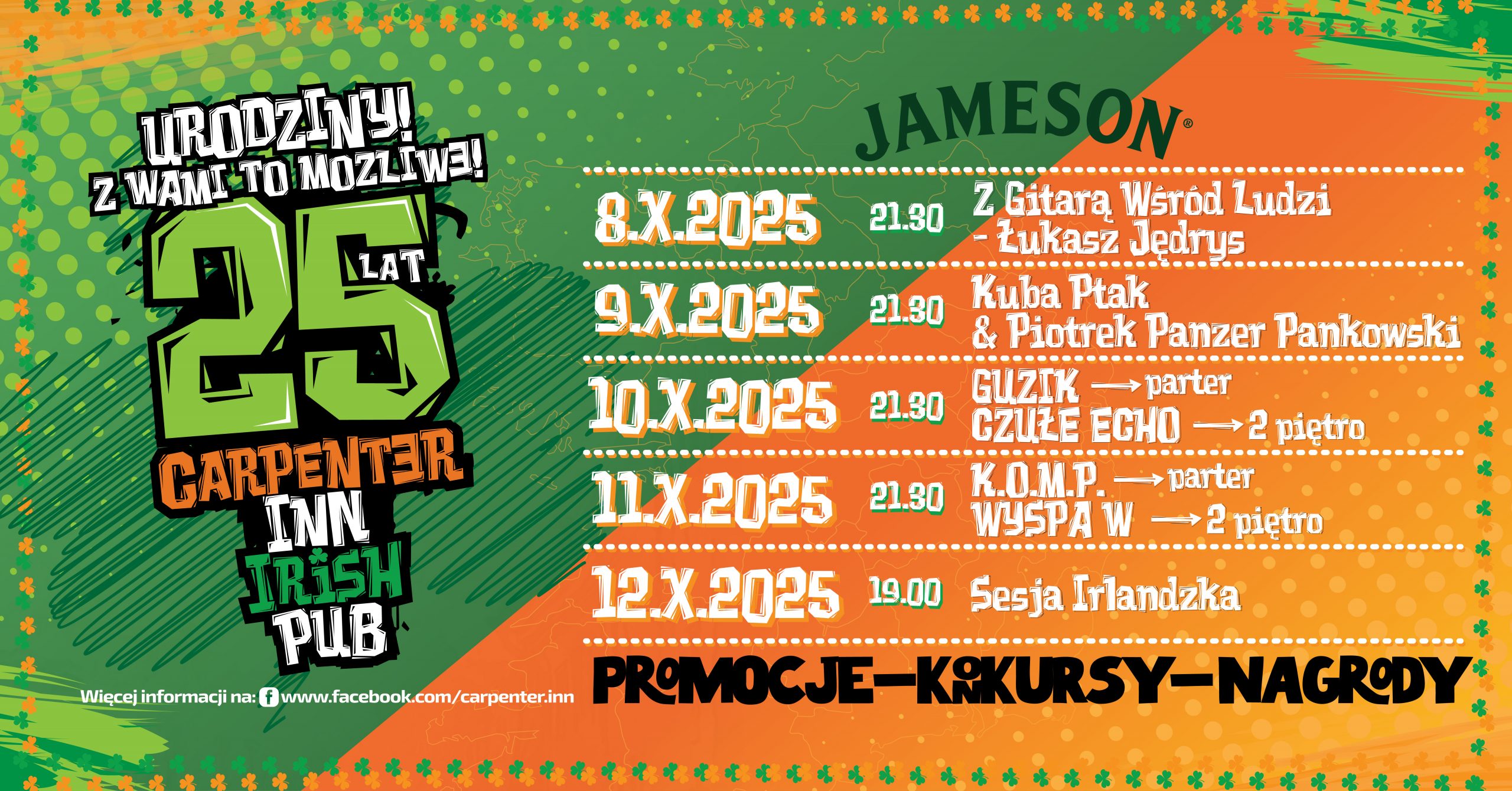 Jak co roku pub na olsztyńskim Starym Mieście obchodzi swoje urodziny. Tej jesieni jubileusz będzie wyjątkowy, ponieważ Carpenter Inn kończy 25 lat! Z tej okazji przygotowano dla bywalców pubu konkursy, promocje i nagrody, a także koncerty.