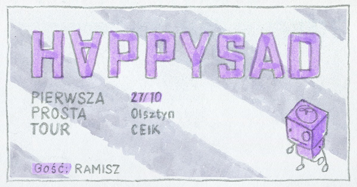 Happysad rusza w trasę promującą płytę Pierwsza Prosta i zawita z koncertami do osiemnastu klubów w całej Polsce. Na każdym z nich usłyszycie zarówno nowe utwory zespołu, starsze klasyki, jak i te, które zespół postanowił grać tylko na koncertach klubowych.