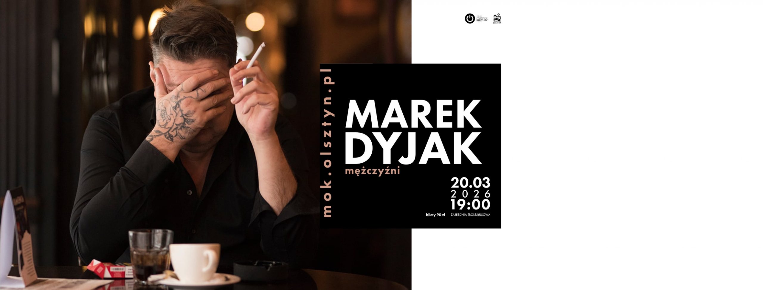 Miejski Ośrodek Kultury w Olsztynie zaprasza na koncert Marka Dyjaka, który odbędzie się w piątek 20 marca 2026 roku o godz. 19:00 w Zajezdni trolejbusowej przy ul. Knosały 3B.