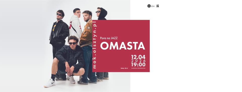 MOK Olsztyn zaprasza na kolejną odsłonę cyklu Pora na JAZZ! Koncert grupy Omasta odbędzie się w niedzielę 12 kwietnia 2026 o godz. 19:00 w Zajezdni trolejbusowej przy ul. Knosały. Omasta podąża nowymi drogami, nie porzucając tych już przetartych. Zakorzenieni w jazzie, ale głęboko zanurzeni w hip-hopie i kulturze ulicznej, tworzą śmiałą fuzję tradycji i innowacji.