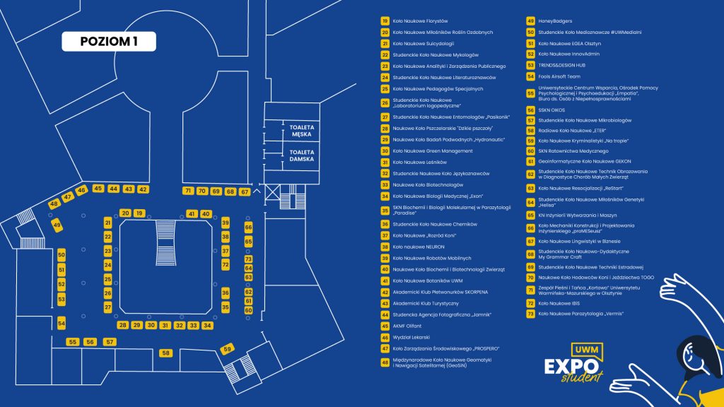 Student EXPO UWM to niepowtarzalna okazja, by w jednym miejscu poznać bogatą ofertę kół naukowych, organizacji studenckich, pracodawców, agend kulturalnych, drużyn sportowych oraz innych instytucji współpracujących z uczelnią. To przestrzeń, w której możesz odkryć nowe możliwości rozwoju swoich pasji, zainteresowań i kompetencji zawodowych.