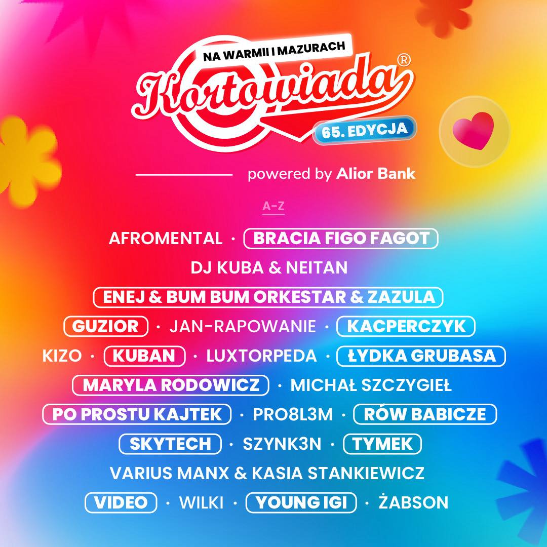 Ponad 30 artystów wystąpi podczas olsztyńskich juwenaliów, czyli Kortowiady 2026! Na dwóch scenach studenckiego festiwalu pojawią się m.in.: Maryla Rodowicz, Wilki, Varius Manx & Kasia Stankiewicz, Enej (z towarzyszeniem BUM BUM ORKeSTAR & Zazuli) oraz kilkunastu raperów. Impreza odbędzie się w dniach 27-30 maja odbędzie się w Kortowie.