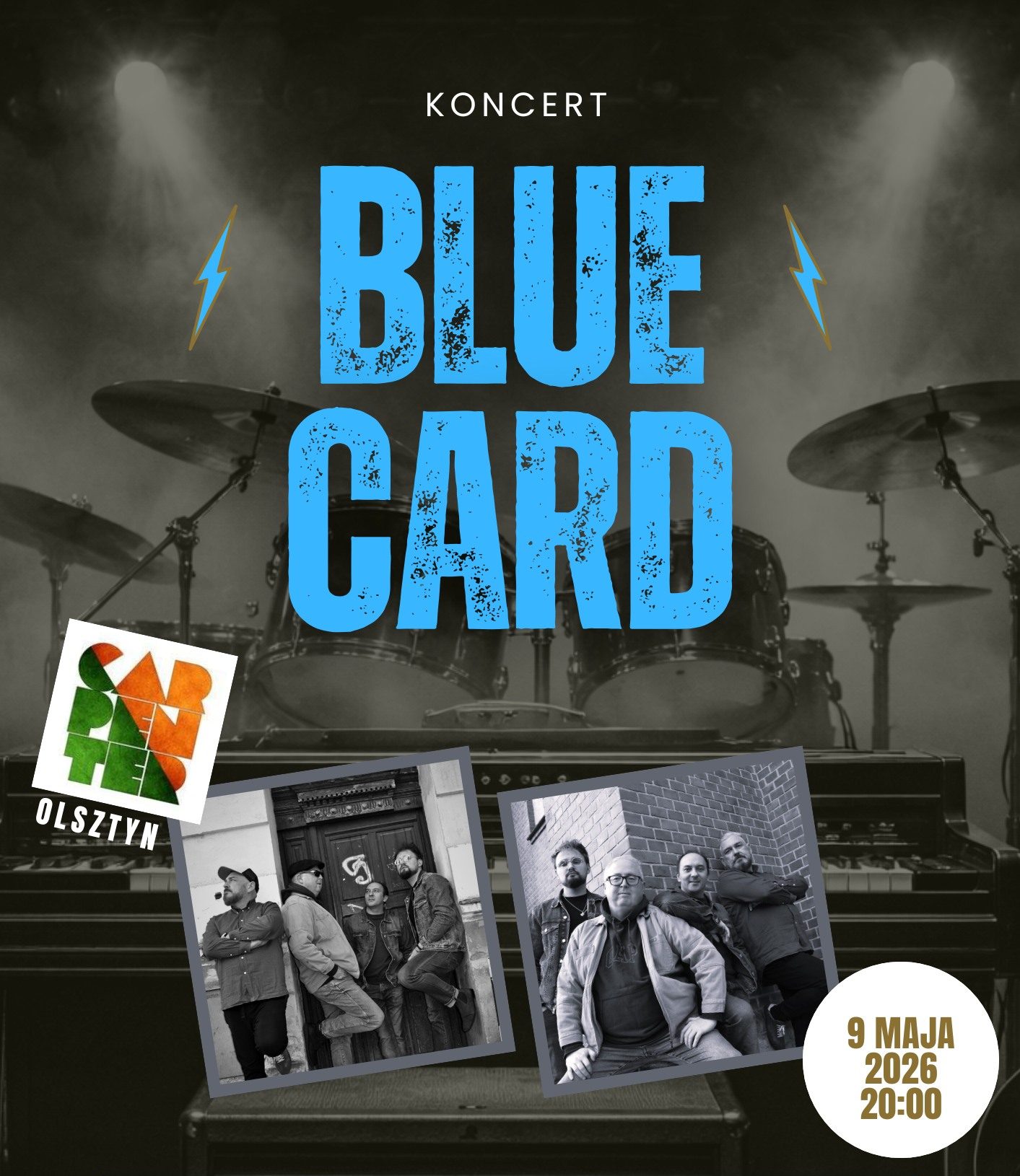 Blue Card to olsztyński zespół o bluesowej nazwie i czterech muzycznych twarzach tworzących niepowtarzalny styl i klimat. Łączy nas zamiłowanie do energetycznej muzyki z pogranicza bluesa, rocka i big bitu, rasowego lampowego brzmienia gitar elektrycznych, blues-rockowego pulsu oraz brzmienia organów Hammonda.