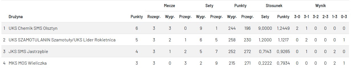 UKS Chemik Olsztyn – MKS MOS Wieliczka 3:0 (25:16, 25:17, 25:21)