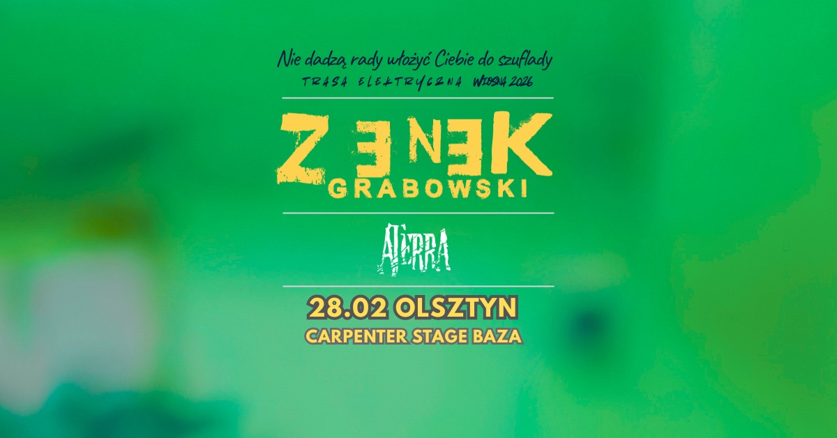 Zenek Grabowski zaprasza na wiosenną trasę elektryczną „Nie dadzą rady włożyć Ciebie do szuflady”! Przekrój utworów z całego okresu twórczości Zenka, wraz z kolejną porcją numerów z płyty „Jeszcze Raz to Samo”. Koncert w Olsztynie otworzy gość trasy – zespół Aterra.