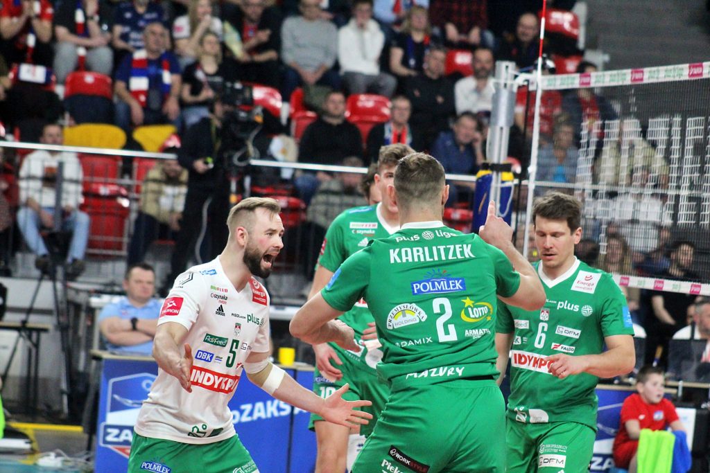 ZAKSA szybko zbudowała sobie pięciopunktową przewagę (10:5). Górowała w każdym elemencie gry. Asy serwisowe zapisali na swoim koncie Igor Grobelny, Konrad Stajer i Jakub Szymański. Skuteczny w ataku był Kamil Rychlicki. A olsztynianie wyglądali na bezradnych. Pokazuje to też wynik pierwszej partii – 25:16. W drugim secie jednak się przebudzili. I choć gospodarze kilkukrotnie odskakiwali na kilka punktów, a w końcówce prowadzili 24:20, Indykpol wyrównał, a chwilę później cieszył się z wygranej 30:28. Pomogły zmiany. Za Jana Hadravę wszedł Arthur Szwarc, za Moritza Karlitzka – Karol Borkowski, a Johannesa Tille zmienił Łukasz Kozub. Na ostatnie akcje na parkiecie pojawił się też Dawid Siwczyk.
