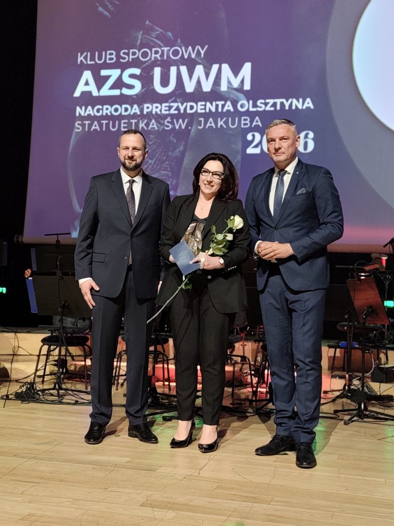 W kategorii sport wyróżniono natomiast KS AZS UWM Olsztyn. Statuetkę w imieniu prezesa klubu – profesora Jerzego Przyborowskiego – odebrała prof. Mariola Grzybowska-Brzezińska, prorektor UWM ds. polityki kadrowej i finansowej.