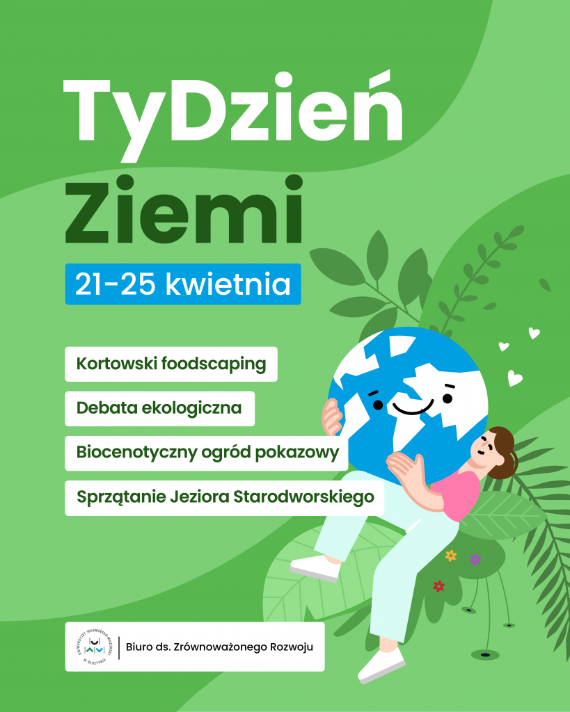 Cztery dni, cztery wydarzenia i jedna sprawa, która dotyczy nas wszystkich. Jak zadbać o naszą planetę? Tego dowiesz się podczas wydarzeń organizowanych od 21 do 25 kwietnia na Uniwersytecie Warmińsko-Mazurskim w Olsztynie. Świętuj z nami TyDzień Ziemi!