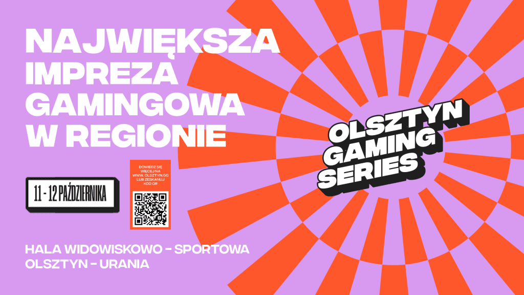 Olsztyn Gaming Series 2025 to dwa dni pełne zabawy, emocji i gamingu w najlepszym wydaniu! 11 i 12 października Hala Urania zamieni się w przestrzeń turniejów, stref free2play i atrakcji dla całych rodzin. Czekają na Was rozgrywki w najpopularniejsze gry, konkursy, quizy oraz spotkania z wyjątkowymi gośćmi. Przyjdź, jeśli chcesz poczuć esportową atmosferę i spędzić weekend w świecie gier!