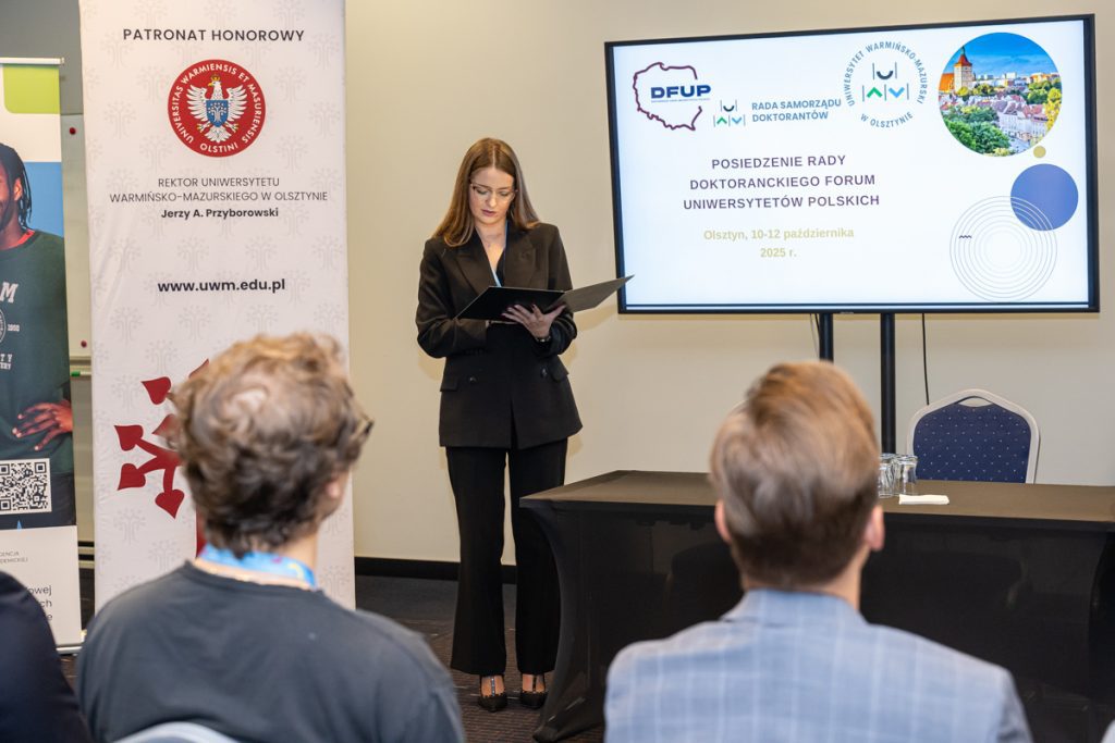 Uniwersytet Warmińsko-Mazurski w Olsztynie był gospodarzem posiedzenia Rady Doktoranckiego Forum Uniwersytetów Polskich. To organizacja, która reprezentuje interesy doktorantów na szczeblu krajowym oraz wspiera ich w różnych aspektach życia akademickiego i zawodowego. Działa na rzecz poprawy warunków studiowania, prowadzenia badań naukowych oraz rozwoju kariery doktorantów.