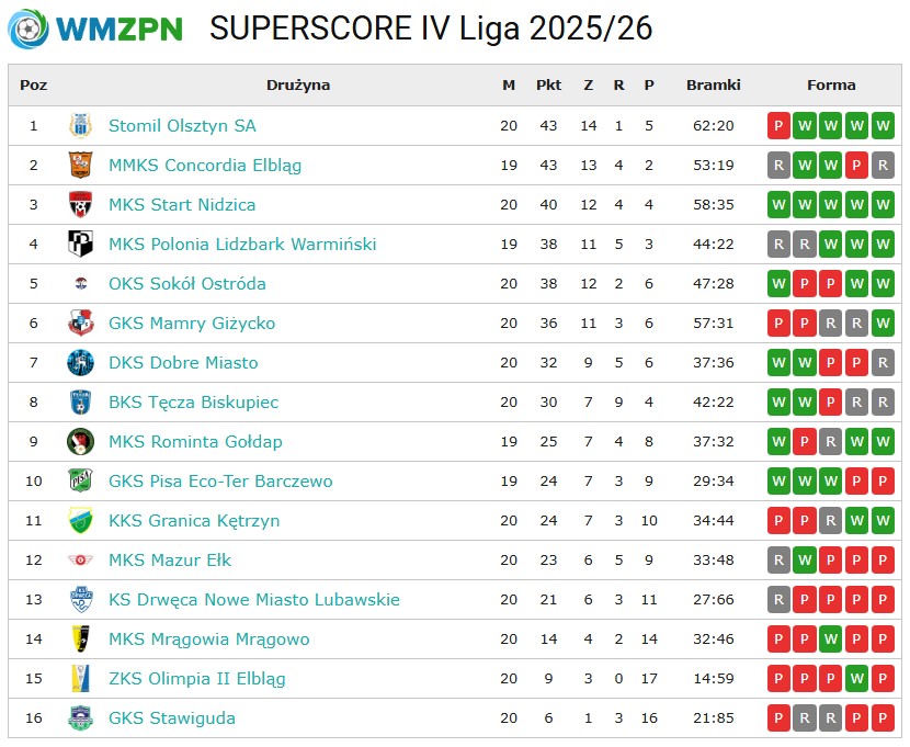 16:00 – Concordia Elbląg – Pisa Barczewo