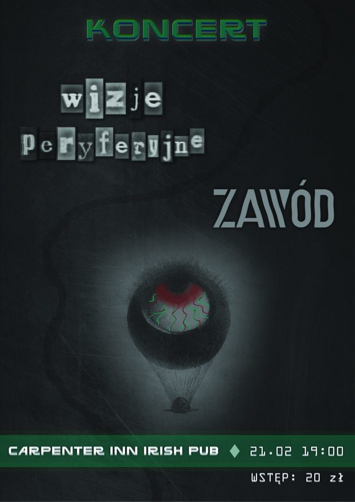 Wizje Peryferyjne z Olsztyna i Zawód z Torunia zagrają wspólny koncert w Carpenter Inn Irish Pubie w najbliższą sobotę 21 lutego.