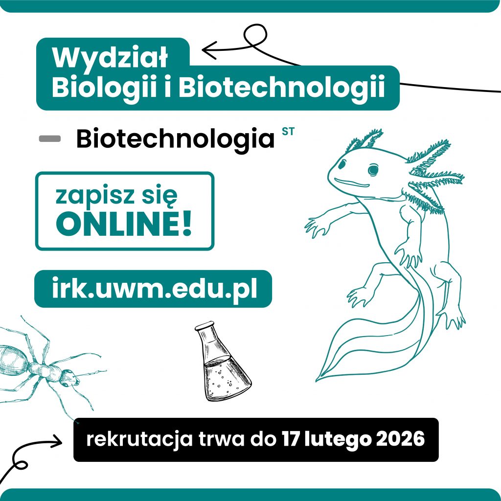 Biotechnologia to kierunek kształcenie realizowany na studiach II stopnia przez Wydział Biologii i Biotechnologii UWM.