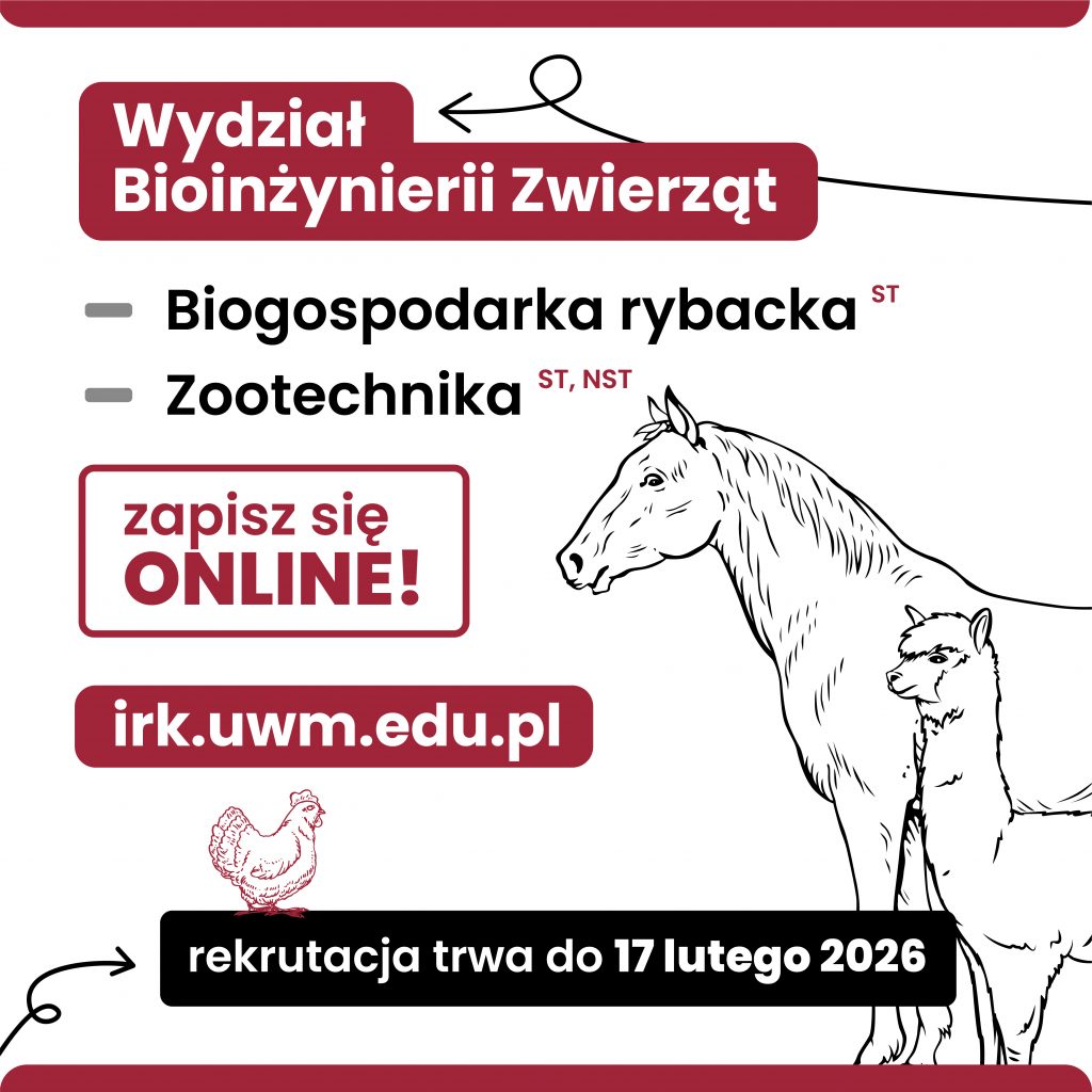 Wydział Bioinżynierii Zwierząt UWM zaprasza absolwentów studiów inżynierskich na dwa kierunki studiów II stopnia: biogospodarkę rybacką oraz zootechnikę.