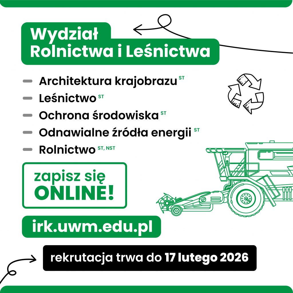 To ostatni moment, by zapisać się na studia II stopnia i wziąć udział w rekrutacji śródrocznej na Uniwersytecie Warmińsko-Mazurskim w Olsztynie. Kończy się ona już we wtorek 17 lutego o 15:00. Uczelnia proponuje dwadzieścia kierunków kształcenia w trybie stacjonarnym (w tym trzy w języku angielskim) oraz siedem kierunków w trybie niestacjonarnym. O każdym z nich na antenie Radia UWM FM opowiadali prodziekani siedmiu wydziałów odpowiedzialnych za ich realizację. A rozmawiał z nimi Piotr Szauer. Posłuchajcie i… zarejestrujcie się w systemie IRK!