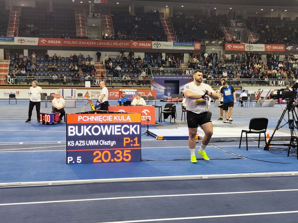 Konrad Bukowiecki wywalczył w Toruniu złoty medal lekkoatletycznych halowych mistrzostw Polski. Wynikiem 20 metrów i 10 centymetrów wygrał konkurs pchnięcia kulą. Na najniższym stopniu podium stanął natomiast drugi z reprezentantów klubu AZS UWM Olsztyn – Wojciech Marok.
